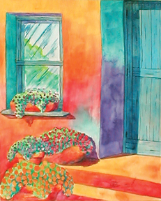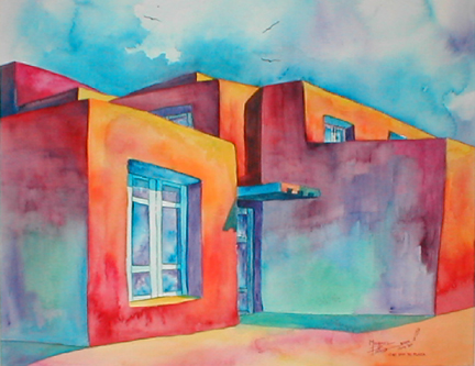 "Just off the Plaza" • 21x25 framed Private Collection • Watercolor on Paper