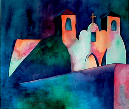 "Ranchos de Taos Church by Moonlight" 19.75x22 • Private Collection • Watercolor on Paper