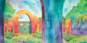"Garden Entrance" 21x28 framed Watercolor on Paper • Private Collection
