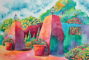 "Casa Vuelta" • 15x28 framed • Watercolor on Paper • Collection of the Lopez Family