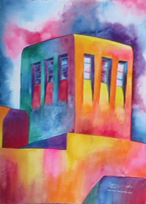 "Meem's Tower (Mesa Vista Hall, UNM)" • 30x38 framed • Watercolor on Paper • Private Collection